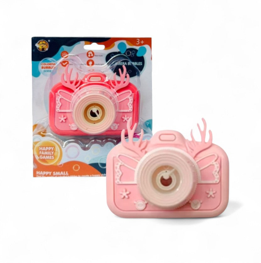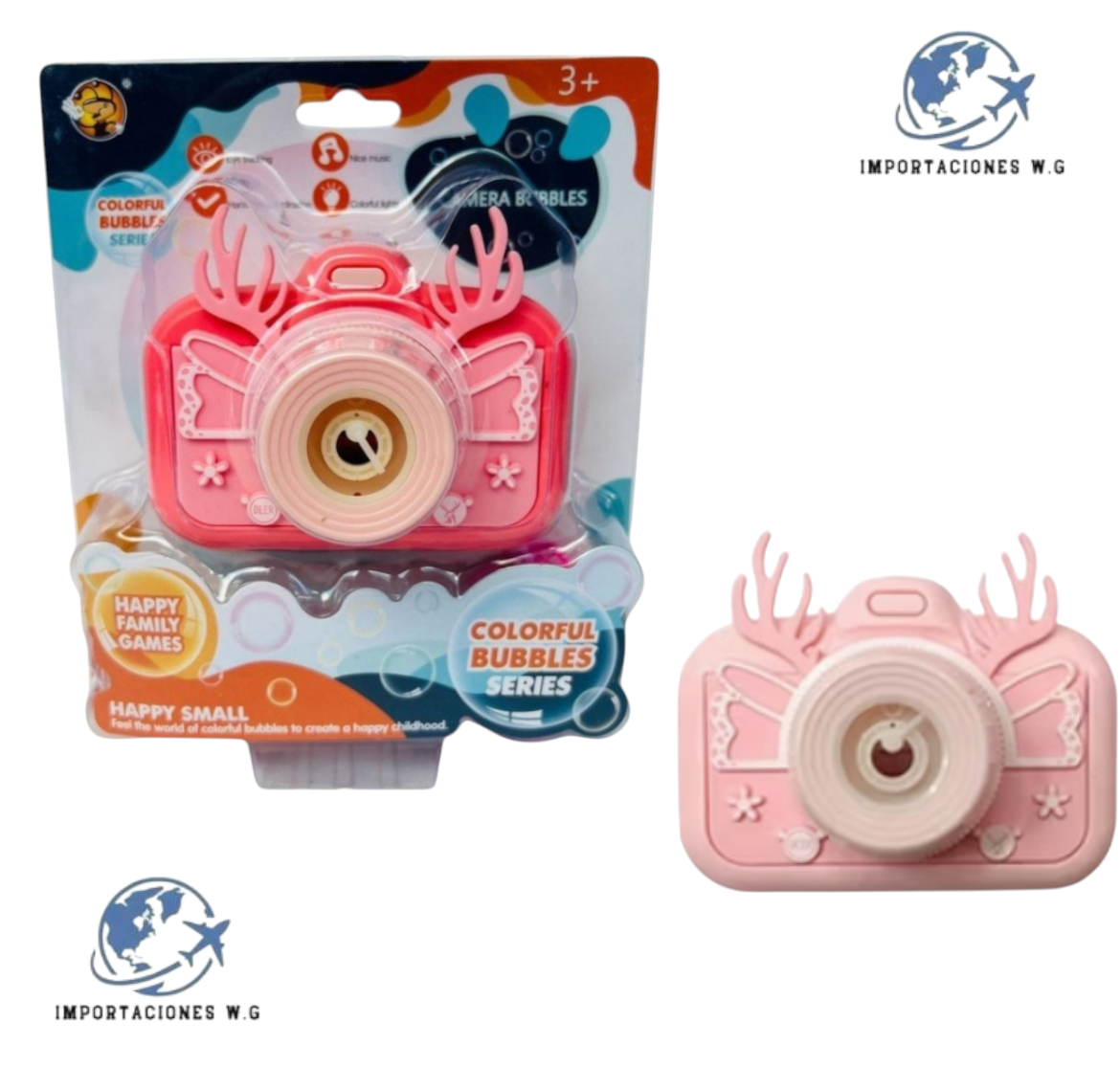 Camara de burbujas con luz, sonido, funciona con pilas.