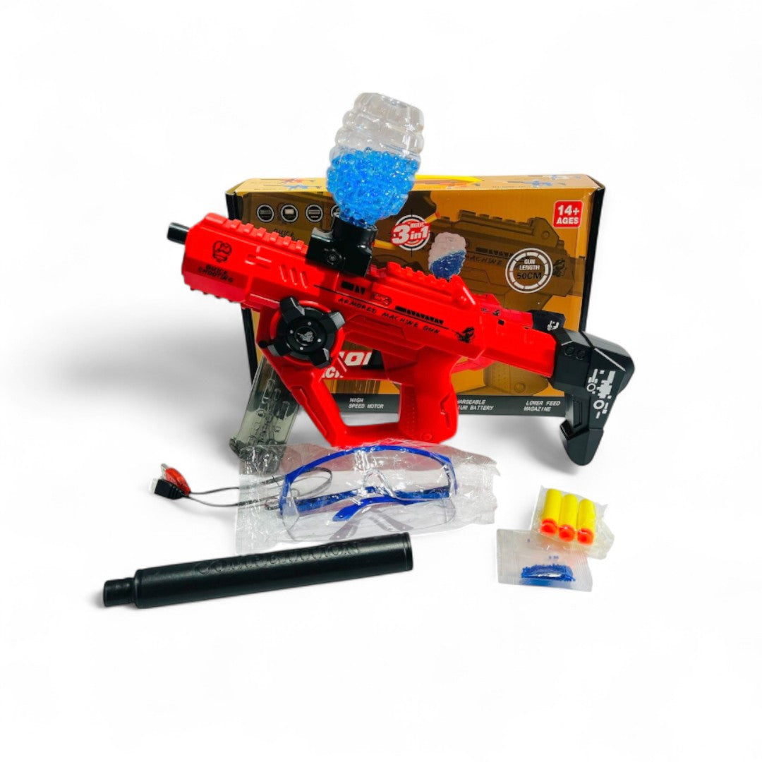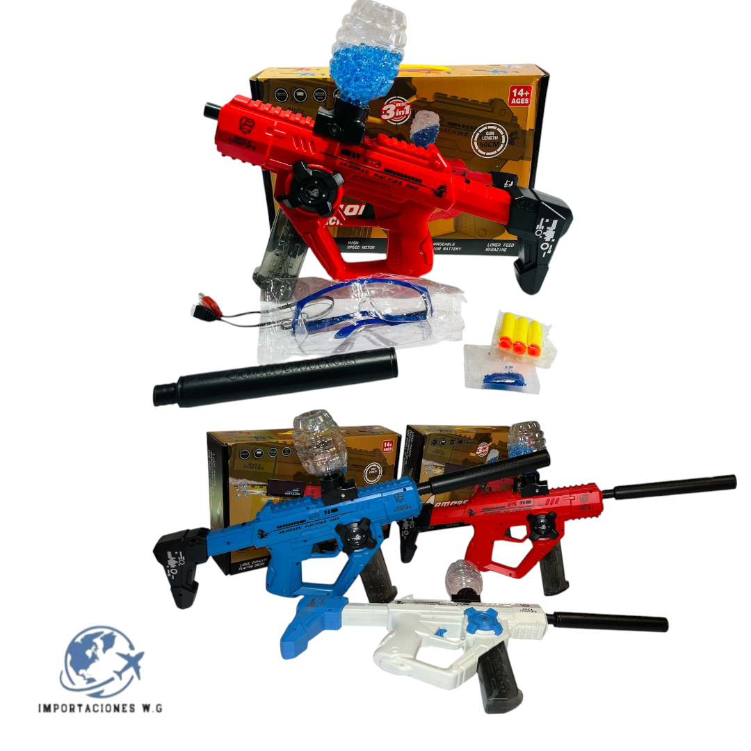 Lanzador hidrogel, 3 modos diferentes: bolas hidrogel, dardos y agua. recargable, kit contiene: gafas, dardos, tarro hidrogel, repuestos hidrogel, cable de carga.