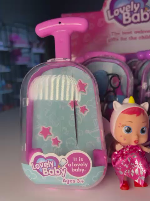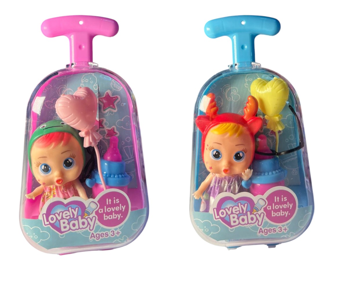 Set maleta con bebe y accesorios. Cada mini bebé viene acompañado de encantadores accesorios que incluyen un globo en forma de corazón, un biberón y un animalito de juguete. Estos detalles hacen que cada momento de juego sea aún más especial, permitiendo a las niñas crear historias y aventuras con sus nuevos amigos.