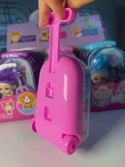 Set maleta con bebe y accesorios. Cada mini bebé viene acompañado de encantadores accesorios que incluyen un globo en forma de corazón, un biberón y un animalito de juguete. Estos detalles hacen que cada momento de juego sea aún más especial, permitiendo a las niñas crear historias y aventuras con sus nuevos amigos.