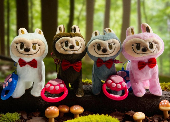 Labubu en tamaño grande, avanza al tirar del lazo, cuenta con 10 canciones y puede repetir lo que dices.