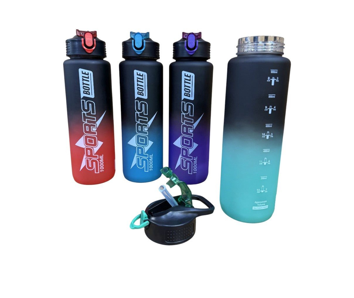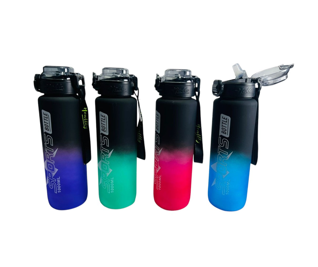 Termos deportivos de 1000 ml. Fabricados en plástico resistente y disponibles en una variedad de colores vibrantes. Ideales para llevar al gimnasio, entrenamientos al aire libre o cualquier aventura deportiva. ¡Hidratación con estilo y motivación!